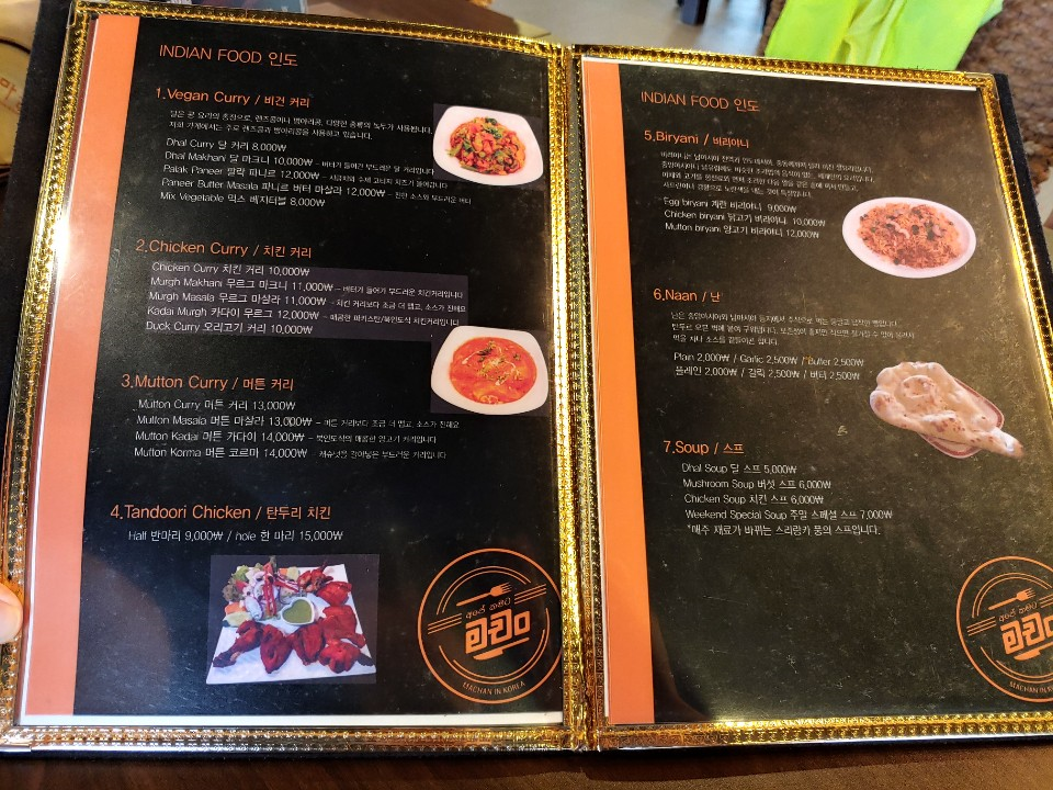 메뉴판이 인도어로 적혀져 있어서