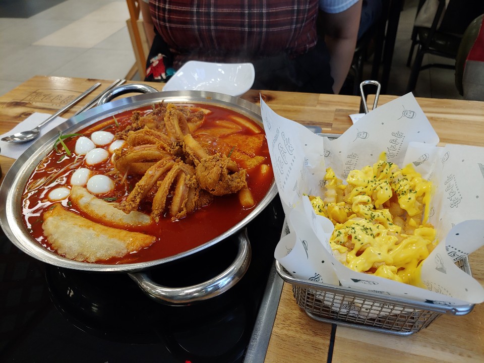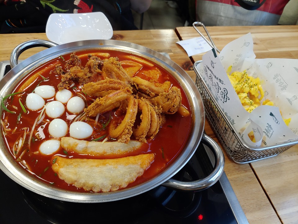 오징어튀김 떡볶이와 감자튀김을 주문하고