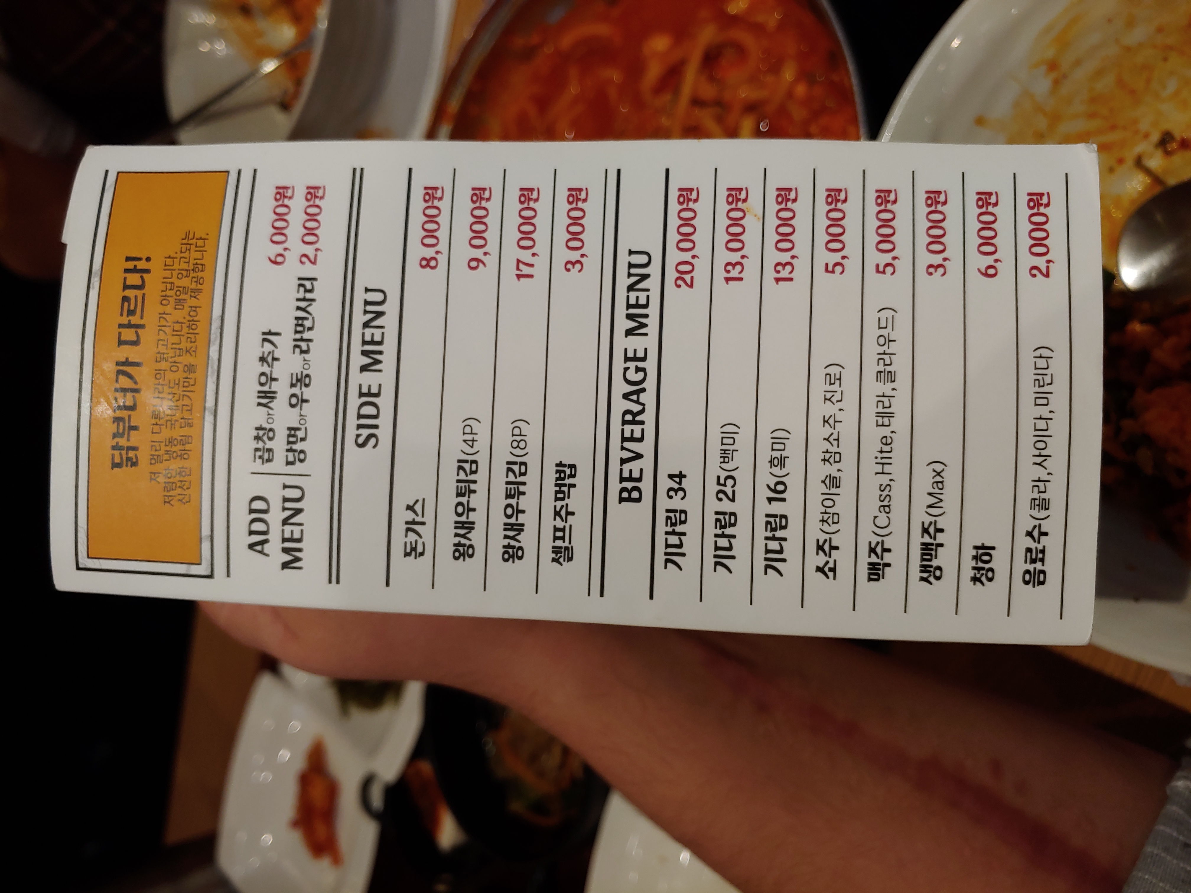 메뉴판 사진을 조금더